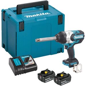 Makita 18V LXT 3/4' Heavy-Duty Impact Wrench with Extended Anvil - Kit The Makita DTW1005RFJ is a professional-grade 18V LXT Brushless Impact Wrench equipped with a 3/4' square drive and a long anvil, making it perfect for demanding applications such as automotive, construction, and heavy machinery maintenance. As part of the Makita LXT 18V platform, it offers reliable cordless power with outstanding torque. Engineered with a brushless motor, this tool delivers both higher efficiency and longer lifespan compared to brushed models. With an impressive 1,050 Nm of fastening torque and 1,800 Nm of nut-busting torque, it effortlessly handles large bolts and tough fasteners where maximum power is required. Features: Powerful brushless motor: Ensures durability, efficiency, and reduced maintenance High torque output: 1,050 Nm fastening and 1,800 Nm loosening for heavy-duty jobs Long anvil design: Allows better reach for deep-set fasteners Variable speed trigger: Full control over speed and