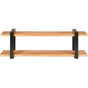 This stylish wooden TV cabinet featuring an industrial style is meant to be the focal point of your living room or entertainment area. It can also be used as a coffee table, sideboard, low board, etc. The TV stand is made of solid acacia wood, which is a hardwood with dense grains. This beautifully-designed lowboard is stable, durable and eye-catching. Additionally, the exquisite craftsmanship and beautiful wood grains make every piece slightly different from the next. The powder-coated iron legs add its extra stability. The bottom shelf enables you to keep DVD players, game consoles, streaming devices and media carriers neatly organised. Important note: The colours vary from piece to piece, making each piece unique. The delivery is random, ensuring the exclusivity and individuality of your product. Borough Wharf