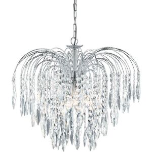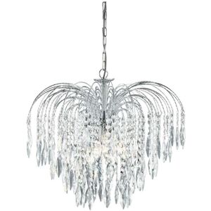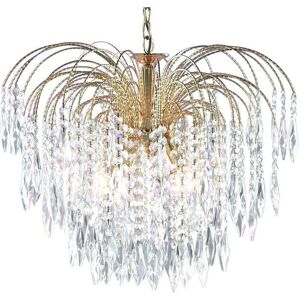 Specification Searchlight Waterfall - 5 Light Ceiling Chandelier Gold with Crystals, E14 Finish: Gold Material: Crystal IP Rating: IP20 Height (cm): 45 Diameter (cm): 53 No. of Lights: 5 Lamp Type: E14 Dimmable: Yes Wattage (max): 60 Weight (kg): 4.7 Class: 1 (Earthed) Bulb Included: No Description This is a stunning blend of vintage elegance and bold silhouettes. This 5 light ceiling fitting features sleek curved gold finish arms around a decorative central frame, with overlapping tiers of shimmering crystal buttons and drops that create a picturesque cascading light effect and form a dramatic effect when illuminated