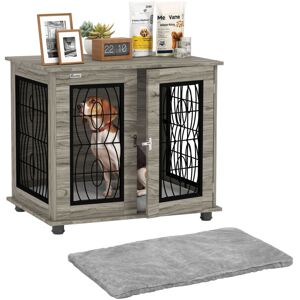 Discover a dog crate that's more than just a crate—it's a chic furniture piece brimming with contagious charm, designed to elevate your living space while wrapping your furry friend in comfort. The PawHut two-in-one Dog Crate combines a sleek wood finish with a robust, modern design, effortlessly blending into your home, whether it's a cosy terrace house or a contemporary flat. It's perfectly sized for dogs up to 40 kg and no more than 70 cm, offering them a spacious, stylish retreat to lounge. Specifications: ● Colour: Grey wood effect ● Material: Particle board, steel and polyester ● Overall dimensions: 82H x 118L x 75Wcm ● Inside space: 74.3H x 113L x 69Wcm ● Door: 73.5H x 56Wcm ● Cushion: 114L x 70W x 5Dcm ● Bar spacing: 3.7Wcm ● Off the ground: 4.7cm ● Top weight capacity: 20kg ● Item label: D02-193V72GY Features: ● Doubles as a stylish side table and cosy dog crate ● Includes a soft, washable cushion for comfort ● Features a lockable front door, with wire mesh for ventilation ●