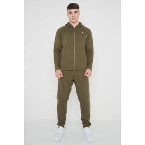 The Nike Optic Zip Tracksuit is designed with a full zip fastening and drawstring hood for a perfect fit which will keep you protected from the elements, the open hand pockets are great for storing valuables or keeping your hands warm. The fleece jogger pants have an elastic waistband for added comfort and a sleek design for an elegant fit from the hips to the hem. Made from a smooth fabric this tracksuit is sure to provide all-day comfort while the Nike Swoosh logo ensures a recognisable finish to the design. Standard fit Full zip fastening Panelled hoodie, with adjustable hood 2 front open pockets Ribbed hem and cuffs Elastic waistband with drawcord stretches for comfort Tapered fit and cuff design Zippered back pocket for secure storage offers space Outer stitched hand pockets provide convenient storage Double knit fabric offers a soft feel and comfort Rubber Nike corporate logo patch heat-applied to the hip and chest 62% Cotton, 38% Polyester Machine Washable