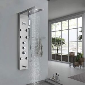 ❤5 Functions:(Rainfall Shower Head, Waterfall Shower Head,Massage Sprayer,Hand Shower,Low Tub Spout).Each function work separately,ensure enough water pressure.Diverter knob for diverter each function. ❤Safe Shower: 38° thermostatic control valve and temperature screen can control the water temperature well, enjoy bathing and prevent family burns. ❤Material: The panel is made of durable 304 stainless steel, which has the characteristics of corrosion resistance, low maintenance, and long life. The brushed stainless steel has a unique appearance, with a soft gloss and fine parallel line pattern, which has a strong decorative appeal. ❤Reliable ceramic ink cartridges: Withstand 500,000 opening and closing tests. Advanced ceramic engineering is convenient and precise. ❤Service:Any question please do not hesitate to contact the seller.