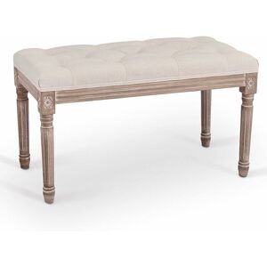 FUNCTIONAL ART: Enjoy all the panache of vintage French furniture with none of the discomfort or worry! This beautiful, comfortable, and versatile upholstered bench combines classic Continental style with modern materials and comfort to easily suit any home decor. SUPERIOR QUALITY: Our vintage bench's birch frame and rubberwood legs come with a pleasing weathered finish but are themselves highly durable, boasting a 23-stone (150 kg) weight capacity and family-friendly upholstery. The floor-friendly rubber pads hold but protect any surface. GRACEFUL ACCENTS: The thick foam padding of this 80x42 cm bench incorporates diamond tufting, while the solid wooden legs are delicately carved with vintage patterns. HIGHLY VERSATILE: An easy fit in any space, this multipurpose bench works great in foyers and entryways but is just as suitable as a comfortable piano bench, as a handy bedroom bench, or as extra seating in your dining or living room. ASSEMBLES QUICKLY, LASTS YEARS: Pre-drilled holes