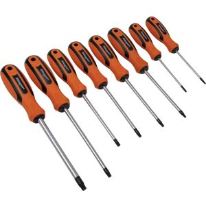 Sealey Siegen TRX-Star* Screwdriver Set 8pc Features: Hardened and tempered Chrome Vanadium steel shafts with a satin finish. Shot blasted and magnetized tips. Contoured handles with soft rubber grip for comfort and control. Technical Details: • Hardened and tempered Chrome Vanadium steel shafts with a satin finish. • Shot blasted and magnetized tips. • Contoured handles with soft rubber grip for comfort and control. • Sizes: T8 x 75, T10 x 75, T15 x 100, T20 x 100, T25 x 100, T27 x 100, T30 x 125, T40 x 125mm. • Lifetime guarantee*. • Model No. S0897 • Model No. S0897 Additional Information: • Part of the Siegen by Sealey range of quality tools at competitive prices. • Hardened and tempered Chrome Vanadium steel shafts with a satin finish. • Shot blasted and magnetized tips. • Contoured handles with soft rubber grip for comfort and control. • Lifetime guarantee*.