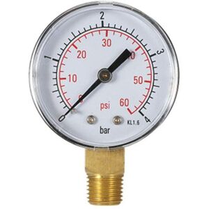 This 60 psi hydraulic air compressor pressure gauge features 2" front and 1/4" NPT side mount. This pressure gauge can be used to measure air, water, oil, gas and any other element that brass does not corrode. It also can be a perfect pressure gauge for swimming pool filters. This pressure gauge features dual scale design and clear number for easy and convenient reading. The case is made of metal. Provides good protection of the internal part, durable resistance to high temperature, shock and corrosion. Easy to use: bottom mount, no additional tools required, easy installation.