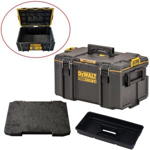 Features and Benefits A high performance seal in the lid ensures they are dust tight and water jet resistant (IP65) to withstand the most severe weather Easy Close Metal Wire Front Latches - Providing Easy One Handed OperationAuto Stacking Latches - Intuitive, Easy To Use And Time Saving Latches For Connecting Modules Together Half Module Compatibility - Allowing Half Width Modules To Be Connected To The Box Wider and Stronger Handles - Better Ergonomics and StrongerDewalt Tracker Ready - Internal fixing point allows Dewalt Tracker to be installed and box tracked via DEWALT Tool Connect Metal Reinforced Padlock Eye - Providing Superior Security To The Contents Name Panel Insert - Allowing Boxes To Be Labelled Up By End Users For Easy Identification Of Contents Main Features of Dewalt Toughsystem 2.0 The NEW stackable Dewalt TOUGHSYSTEM 2.0 storage system impresses with improved functions such as water and dust protection according to IP65, easy-to-close metal front bolts and automatic