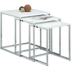 With this set of nesting tables, you can personalise your home on a daily basis! The 3 wooden tables of varying sizes can be nested together to save space. The set is both a practical storage solution as well as a decorative eye-catcher for any home. From side table to flower stand, the tables have multi-purpose uses and are practical as well as lovely. The chic appearance looks great in any home, whether in the bedroom, living room, patio or porch. Details on the 3-Piece Set of Wooden Tables • Large: approx 42 x 40 x 40 cm (16.5 x 15.7 x 15.7 in) • Medium: approx 39 x 35 x 35 cm (15.4 x 13.8 x 13.8 in) • Small: approx 36 x 30 x 30 cm (13.2 x 11.8 x 11.8 in) • Total weight: approx 6 kg (13.2 lbs) • Material: MDF and metal frame Brown or White Side Tables • Sturdy stand with metal legs • Suitable as coffee table, flower stand, sofa table, etc. • Feet with rubber protectors • Can be pushed together • Ideal as side table for the sofa, patio or garden Included in Delivery • 3x MDF table