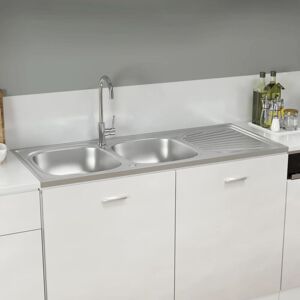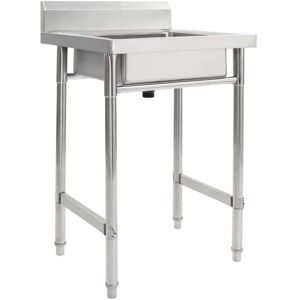 This quality kitchen sink, with double basins, will be a perfect choice for professional kitchens in restaurants, hotels, schools, work places and other public places. Made of premium stainless steel, this kitchen sink is scratch & impact resistant, highly durable and able for food contact. It is also dirt-repellent and stain resistant, thus easy to clean. The extra-deep double basins have ample space for washing large pans and dishes. Thanks to the backsplash design, it can prevent water from spattering. Additionally, the sink is easy to assemble and move. Note: Delivery also includes 2 drains and 2 basket strainers for easy debris removal; the tap is not included in delivery. Colour: Silver Material: Stainless steel Overall dimensions: 120 x 60 x 85 cm (L x W x H) Sink bowl depth: 20 cm With double basin and backsplash Drains and strainers included Able for food contact Easy to move Assembly required: Yes