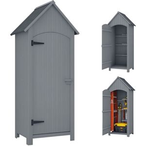 If your wooden shed and tools are cluttering up space, it's time they had their own spot – in our Outsunny garden tool storage shed! Everything is discreetly stored behind the large bolted door, yet always easily accessible. The bitumen on the gable roof keeps everything inside dry. With its enchanting gable roof, the tool shed beautifies your outdoor area and magically clears away the clutter. Specifications: ● Colour: Grey ● Material: Fir Wood ● Overall Dimensions: 77.5L x 54.2W x 179.5H cm ● Floor Space: 0.3144 m² ● Eaves Height: 137.5 cm ● Shelf Dimensions: 35L x 25.5W x 27.5H cm ● Door Dimensions: 52W x 126H cm ● Weight Capacity: 10 kg (each shelf), 25 kg (floor) ● Item Label: 845-246GY Features: ● 3 small storage shelves for storing small tools and accessories ● Left section to place long and big tools ● Sloped roof with asphalt panels to cover - protecting inside from light-medium weather ● Fir wood structure suitable for outdoor use ● Large door with latch for easy access ●
