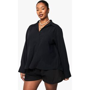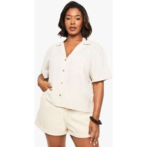 Oversized silhouette with generous proportions for ultimate comfort and contemporary style Classic collar design offering versatile styling options from fully buttoned to casually open Linen-look fabric providing a natural, textured appearance perfect for warmer weather Elegant button-through front with distinctive metallic buttons adding a refined touch Relaxed dropped shoulders and roomy long sleeves creating an effortlessly chic aesthetic This Plus Premium Oversized Shirt from Boohoo delivers the perfect balance of casual comfort and fashion-forward design. The relaxed fit drapes beautifully over the body, creating a flattering silhouette that works wonderfully with slim-fitting bottoms as seen styled with shorts in the images. Pair with tailored trousers and trainers for daytime outings, or dress up with statement jewellery and ankle boots for casual evening gatherings. The versatile nature of this shirt makes it ideal for family brunches, weekend shopping trips, or relaxed coffee dates. Layer under a lightweight gilet when temperatures drop or wear open over a fitted vest for a more casual approach. The neutral tone ensures this piece will become a wardrobe staple that can be styled countless ways throughout the seasons.