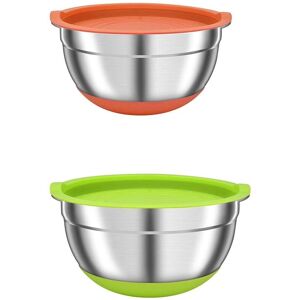 [ MEET YOUR NEEDS ] Stainless steel nesting colorful mixing bowls set contains 2 different sizes (2, 1Qt), perfect for clean the fruits and vegetables, mixing egg and salad, preparing and serving food. [ BETTER STAINESS STEEL QUALITY ] Metal nesting bowls made of highly stainless steel and non-slip silicone bottom.The bowls resist dents and rust proof, silicone bottoms would prevent the metal bowls slippage when mixing, beating and whipping! Also protect the desk from high temperature. [ AIRTIGHT LIDS AND NON-SLIP SILICON BOTTOM DESIGN ] These mixing bowls with airtight lids are freezer safe, flexible plastic airtight lids closely fit the bowls to keep food fresh and dry. Stainless steel nesting mixing bowls with Lids great for food storage and keeps your food fresh longer in the refrigerator. These exquisite design of the kitchen bowls allows you to fully life. [ EASY TO CLEAN ] The stainless steel bowls are much easier to clean by hand or in the dishwasher. Please do not put the