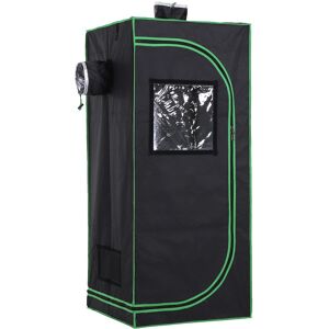 Feature: Lined with reflective mylar blocking light from escaping and retaining heat in the propagation grow tent Tear-proof oxford fabric with double stitched to stop pests getting in this grow tent small Reinforced steel frame keeps tent stable and secure Velcro-sealed high intensity mesh vents Vents with spring buckles to adjust the size Large heavy duty zippers for protection against light leaks from grow light box The ventilation openings in the upper corner to handle cables and for air circulation Detachable waterproof floor tray for easy cleaning Specification: Colour: Black, Green Material: 600D Oxford Cloth, Steel Product Dimension: 120L x 60W x 150Hcm Door Size: 102W x 130Hcm Upper Vents Size: Φ15cm, Φ20cm Bottom Vents: 18L x 30Wcm Observation Window Size: 30L x 30Wcm Item Label: 845-263 1 x Hydroponic Grow Tent 1 x Manual