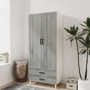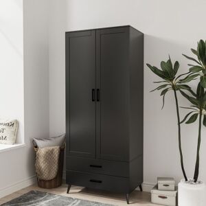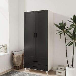The Wardrobe combines style and practicality, making it a perfect fit for modern bedrooms. Featuring a sleek two-door design, it offers ample storage with a spacious hanging rail for clothes and two convenient drawers for smaller items. Its clean lines and neutral finish blend effortlessly with contemporary interiors. Crafted with durable materials, this wardrobe is built to last, ensuring your belongings stay organized. The hanging rail provides ample space for clothing, while the two deep drawers accommodate accessories, linens, or everyday essentials. Measuring 180cm in height, 75cm in width, and 46cm in depth, it fits comfortably in most bedroom layouts. The drawers, with a height of 9.6cm, width of 66.2cm, and depth of 30cm, are ideal for compact yet accessible storage. Add a touch of modern elegance to your room with our Devon 2 door wardrobe. Lark Manor Finish: Black Ash Grey