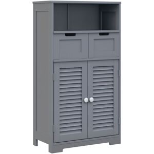 This kleankin small bathroom cabinet gives you that extra storage you need, wherever you need. Combines an open shelf, drawers and bottom cupboard - plenty of space. It's made from MDF: sturdy and suitable for everyday use. Comes with anti-tipping straps to attach safely to a wall. Specifications: ● Colour: White ● Material: MDF ● Overall Dimensions: 61W x 30.5D x 109.5Hcm ● Open Shelf Size: 57W x 28.3D x 20.5Hcm ● Drawer Inner Size: 24W x 23.7D x 12Hcm ● Cabinet Inner Size: 57W x 26.5D x 28.5Hcm (each tier) ● Weight Capacity: 55kg (total), 15kg (top), 10kg (shelf), 5kg (drawer) ● Item Label: 834-666V80WT Features: ● Open shelf, two pull-out drawers and a double-door cupboard ● Shelf inside cupboard is adjustable to three different levels ● Louvred doors allow air inside ● Sturdy MDF structure, with a lightly-protective paint coating ● Anti-tipping straps to attach to wall securely ● Maximum load 55kg, assembly required