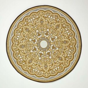 Add some style to your garden or patio area with this round garden rug from Homescapes. Featuring a striking yellow and grey henna design, this decorative outdoor rug has a distinctive and eye-catching pattern, and has been woven from 100% polypropylene. This large outdoor rug is lightweight, UV resistant, and waterproof, making it ideal for all weathers and spaces. Ideal for decorating a patio, decking, or slabbed areas, outdoor rugs are also perfect for picnics, camping, or the beach. Simple and easy to clean. From Homescapes collection of garden ornaments and accessories, this multicolour outdoor rug will brighten up your garden. Homescapes Luxury Round Outdoor Rug Waterproof Reversible, Yellow Rae Size: 180 cm diameter