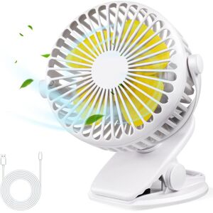 Dual use: holder and clip on the fan. Strong clip with pads, non-slip and won't damage your furniture. Can be put or clipped anywhere, great for baby stroller, home and office, laptop, gym workout, car backseat, buggy, outdoors, camping , travel and anywhere cool wind is needed. 2 Power Modes: Our USB silent fan can be powered by 1x battery (included - NOTE: Battery exterior color may vary from batch to batch) - rechargeable and replaceable. Mini USB fan can also be powered by USB cable, compatible with computers, laptops, power banks, wall and USB chargers 3 wind speeds: just press on the button above the fan to easily adjust the speed mode. The USB desk fan has 3 speeds with 360° rotation, can be fully rotated and tilted at any angle, the airflow reaches the right place. Small but mighty: 17 x 14 x 12 cm, practical small USB fan, lightweight. 3-6 hours working time depends on speed for long term use. Life Saver on Hot Summer: USB portable fan brings plenty of cool air, keeps you