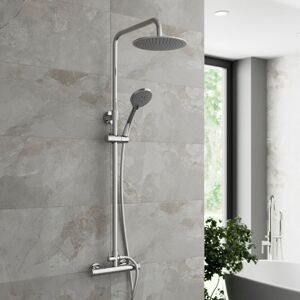 This polished chrome thermostatic mixer shower from Aquari adds a touch of style to the bathroom, especially for those aiming for a contemporary design. Overall, it's a stylish and functional addition to a modern bathroom. Features and Benefits: Striking polished chrome finish exposed design round bar shower valve with thermostatic control. Extreme durability and strength with a solid brass valve. Large 225mm round drencher head to give you a rainfall feeling. The separate adjustable shower handset is ideal for getting at those hard to reach areas. Diverter valve changes between the handset and the drencher head. Two separate beautiful controls, one for temperature and one for adjusting the flow rates. Adjustable height riser rail. FREE 5 year guarantee for complete peace of mind Technical Information: Pipe Centres: 150mm +/- 18mm Inlet Connection Size: G1/2" & G3/4" Suitable for use with high pressure and combination boiler water systems Minimum Bar Pressure: 0.5 Bar Maximum Bar