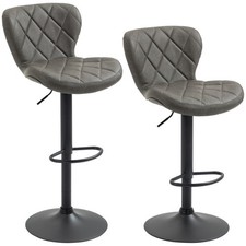 A stylish look for your kitchen dining spots with these HOMCOM bar stools. Faux leather upholstery for a beautiful look. Padded seat and high back to keep you comfortable and supported. A metal base for strength and keeping you supported, the height is adjustable between 63-83cm: set to a level best for you. Completed with a lower footrest. HOMCOM Adjustable Bar Stools Set of 2, Retro Swivel Kitchen Stool with Back, Footrest in Grey