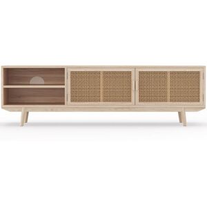 This rattan TV Cabinet in vintage style will give an original look to your living room, bedroom, or entertainment centre. It has two doors and two shelves to display your objects and organize easily reachable books, magazines, board games. Add relaxing vibes to your space with this rattan wooden sideboard. Dimensions : 38 cm x 150 cm x 45 cm (L x W x H)