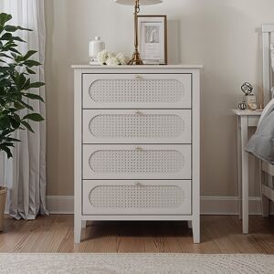The Arthen 4-Drawer Chest blends natural-inspired design with modern functionality. Its standout feature is the use of synthetic rattan on the drawer fronts, adding a warm, woven texture that brings depth and character to any room. ARTHEN Colour: Light Grey