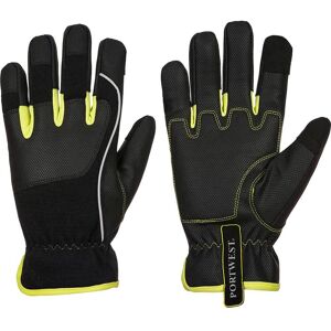 This high-performing glove is multi-purpose and suitable for any job. Lightweight and comfortable without compromising performance. PW3 reflective tape enhances wearer visibility in low light conditions. Designed with reinforced padded palms this glove provides the user with additional comfort and abrasion resistance. This glove can be used on most touchscreen devices. Features and Benefits • High performance multi-purpose glove • Reinforced padded palms • This glove can be used with most mobile touchscreen devices • Additional knuckle padding for extra protection • Level B cut resistance • Specially engineered high visibility material • CE certified • Retail tag which aids presentation for retail sales • UKCA marked Specifications Colour: Black/Yellow Size: XXL Fit: Y