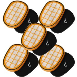 vhbw - the clever way Set of 5x motor filter, 5x pre-motor filter for your battery-powered vacuum cleaner - Replace your filter regularly to maintain maximum dust extraction - Filter insert consists of pre-filter & motor filter - Protects the motor and fan against impurities These powerful motor protection filters insert consists of a pre-filter & motor filter which combine to trap fine dust particles and allergens and protect the motor and fan of your vacuum cleaner against impurities. This increases the service life of your vacuum cleaner whilst maintaining high suction power. The pre-filter is washable and traps coarse dirt particles before the air is fed into the actual engine filter.Change the filters when your vacuum cleaner no longer cleans effectively (every 6 - 12 months). CONTENT OF DELIVERY: - 5x motor filter - 5x pre-motor filter TECHNICAL DETAILS: - Dimensions (L x W x H): 13.7 x 9.6 x 1.8 cm - Largest width: 9.6 cm - Material: foam - Colour: orange / black / white
