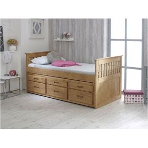 TRADITIONAL DESIGN: Its excellent design will effortlessly complement any interior. Made from high-quality pine with a protective wax/paint finish. It features a high wooden slatted headboard and footboard. STRONG and DURABLE: A solid wooden construction and a solid slatted base. This high quality bed with thick bed slats ensure the bed's stability, safety, firmness and durability. The slatted base promotes greater air circulation and helps to prolong mattress life. DRAWERS INCLUDED: The 3FT frame comes complete with 4 storage drawers and a cupboard, providing ample storage space which can be used to store extra bedding, clothes, games, toys etc. It is an excellent solution for small rooms. PULL OUT UNDERBED: The bedframe is perfect for when friends come and spend the night. Simply pull out the trundle to reveal an extra bed for your guests to sleep and at the end of the visit the guest bed can be pushed beneath the main bed frame. (Please note mattresses are not included, mattress