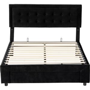 Lots of clothes but no extra space? Then look to this HOMCOM ottoman bed. At the bottom of this king size bed base is a 157.5 x 203.5cm open space for storing garments, accessories and more; the hydraulic lifting mechanism ensures smooth and easy movement so you can lift it by yourself. Also comes with a wheeled front drawer for quicker access. A good night's sleep, in a tidy and clutter-free room; ideal when there's no extra space available.Features:King size bed frame with storage: keep clothing and accessories safely storedSmall front drawer on wheels, for extra and easy access storageVelvet-feel headboard can be fixed to two different levelsWooden slats included to hold mattress level and in placeSteel legs supports the frameMaximum load 500kg, easy to assemble