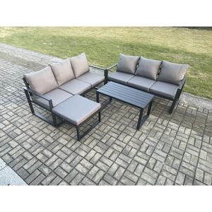 This patio lounge sofa set can be used both indoors and outdoors,with high quality aluminium Frame construction for sturdiness and long lasting. Outdoor garden furniture can also be placed on the patio or balcony,The design of this aluminium garden furniture is a perfect blend of country chic and modern minimalism, adding an elegant touch to your house. Set Dimensions: • 2 x 3 Seater Sofa: 166W x 73D x 78H cm • 1 x Big footstool :60L x 60W x 35H cm • 1 x Oblong Coffee table : 97L x 52W x 51H cm Dark grey powder coated with dark grey fabric .Color may vary little due to light or monitor .we are unable to return the item due to color problem .please contact us before purchase if you have requirement on color saturation. Items Comes Flat Pack And Easy Assemble, Alloy Aluminium Frame With Powder Coating To Prevent The Rust This Set Was Completely Made By Handmade, Aluminum table top Without glass, 9 CM Thick Seat Cushion With Soft Pillow Back Cushion Gives You More Comfort Low Maintence