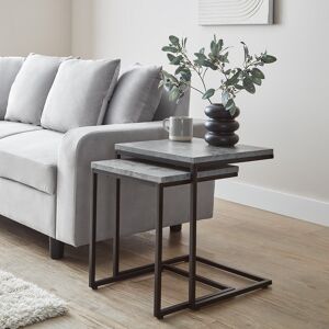 Transform your living space with the Kalyssa Jay Nesting Tables, a contemporary set featuring two tables with stylish concrete-effect tabletops and sleek black metal frames. This industrial-inspired design brings a modern edge to any room while offering practical, space-saving functionality. Perfect for compact living spaces, these nesting tables provide ample surface area when needed and conveniently tuck away to keep your space clutter-free. Ideal for placing drinks, snacks, or decorative items, these tables are a versatile addition to your sofa or lounge area. 17 Stories Table Base Colour: Gold, Table Top Colour: White Marble