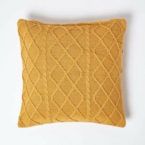 Create a cosy look in your home with this mustard cable knit cushion cover, exclusively from Homescapes. Featuring a stylish diamond cable knit design, this comfortable cushion cover is woven from 100% cotton, to create a durable and rich fabric that feels super soft to the touch. This cover is lined to protect your cushion insert and the cover itself and features an easy to use zip closure that is hidden away. Measuring 45 x 45 cm, it is the perfect size to use as a scatter cushion on your bed, or layer up with other cushions to add comfort to your sofa. A matching mustard cable knit throw is also available from Homescapes so that you can create a stylish matching look in your home. Fill with a comfortable cushion insert from Homescapes (sold separately) to ensure this cushion does not go flat over time. Homescapes diamond cable knit range is also available in grey, so you can mix and match colours if you wish. Homescapes Diamond Cable Knit Cushion Cover in Mustard Size: 45cm x 45cm