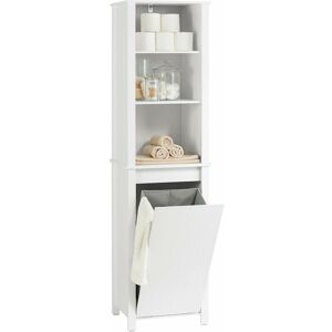 Modern design laundry cabinet storage cabinet would be suitable for a variety of locations, like bathroom, laundry room, utility room, etc. It features a cupboard with concealed laundry basket making it a practical addition to any bathroom. The laundry basket can be taken out completely as a great storage solution. Thanks to the concealed laundry basket, your dirty laundry can disappear behind the closed door. The open storage compartment provides ample storage space for your bathroom essentials. The top of the cabinet is ideal for storing something you might need in reach, or some items you want to display. Coming with 4 plastic mats, which are for the bottom of the legs, effectively protecting your floor from scratching. Coming with anti-tipping device, ensuring great stability and safety. Space saving storage solution that will help keep your bathroom tidy and organized. Modern and elegant design, so it sure fit perfectly with any style of decor. Product Details Material: MDF.