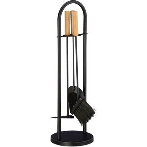 A crackling open fire brings warmth and cosiness into your own four walls on cold and rainy days. With the fireplace set, you not only ensure that the fire burns for a long time, but also that the fireplace stays clean. When hung on the stand, the fireplace set is always ready to hand and neatly stored. The stove accessories are made of robust iron, making them particularly stable and durable. The matt design in combination with the stainless steel handles creates a modern look. Fireplace Set in Detail - Stand dimensions H x D: approx. 57 x 14.5 cm - Length of poker: approx. 45.5 cm - Length ash shovel: approx. 46 cm - Length of ash broom: approx. 45 cm - Total weight of set: approx. 1 kg - Material: Iron, stainless steel - Colour: Black 4-piece Fireplace Accessories Set - Modern stove set in black with stainless steel handles - Practical set with ash shovel, broom and poker - Incl. stand for hanging the stove tools within easy reach - Fireproof stove tools made from robust iron