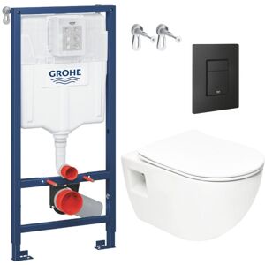 Choose quality and easy installation with this Grohe Toilet Pack Rapid SL Frame + SAT Rimless Toilet + Chrome Flush Plate + FREE Toilet brush £25.5. We combined a high-quality Grohe Rapid SL Support Frame with a Swiss Aqua Technologies Infinitio Rimless Toilet to offer you a stylish and easy-to-install toilet. To complete this toilet pack, we added a FREE Joseph Joseph Flex™ Lite Steel Toilet Brush worth £25.5 inc VAT to clean your toilet thoroughly without damaging it. Reach every corner of your toilet bowl, thanks to its flexible head. Its anti-drip system set it apart from conventional toilet brushes. Discover the easy and seamless installation of the Rapid SL Grohe module with this helpful video guide. Click the link to get started! https://www.youtube.com/watch?v=DeW0CIAlbkA&t=19s Features of Grohe Toilet Pack Rapid SL Frame + SAT Rimless Toilet + Chrome Flush Plate + FREE Toilet Brush (RSLINFI1FL1): Grohe Pack Rapid SL Frame + Chrome Skate Cosmopolitan Flush Plate + Wall Fixings