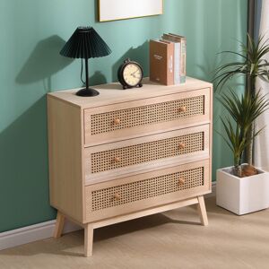 Elevate your home decor with our stunning Rattan 3 Drawer Chest Cabinet in a natural finish. Crafted with the finest rattan materials, this chest cabinet exudes warmth and elegance, adding a touch of organic charm to any room. With three spacious drawers, it offers ample storage for clothing, linens, or household essentials, helping you maintain a clutter-free environment while enhancing your living space. Whether used in the bedroom, living room, or hallway, this versatile piece seamlessly combines style and functionality. Bring the beauty of nature indoors with our exquisite Rattan 3 Drawer Chest Cabinet. Material: Rattan, Mdf Wood, Vaneer, Pinewood. Product Size: L80xD33xH78cm. Product Weight: 24kg 17 Stories