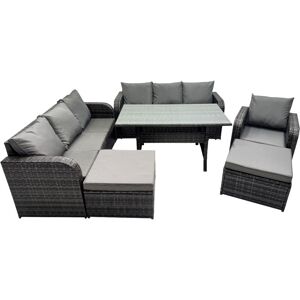 This patio rattan sofa set can be used both indoors and Outdoor,with high quality PE rattan and durable galvanized steel construction for sturdiness and long lasting. Outdoor garden furniture can also be placed on the patio or balcony,The design of this rattan furniture is a perfect blend of country chic and modern minimalism, adding an elegant touch to your house. Set dimensions: •1 x Reclining chairs Size: 74W x 69D x 79H cm •2 x 3 seater Sofa Size: 177W x 67D x 79H cm •1 x Dining table size: 140L x 80W x 70H cm •2 x Big Footstool :65L x 65W x 34H cm Dark Grey Mixed rattan with dark grey fabric .Color may vary due to light or monitor .we are unable to return the item due to this problem .Please contact us before purchase if you have requirements on color saturation . The armchair is adjustable, you can adjust the inclination of the chair back from 90°-130° through the button . Items Comes Flat Packed And Easy to Assemble,Sturdy Galvanized Steel Tube Metal Frames With Powder Coating