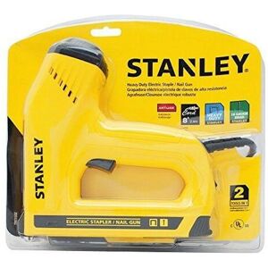 The Stanley 0-TRE550 Heavy-Duty Electric Staple/Nail Gun with anti-jam feature and ergonomic soft grip handle. Easy access staple insertion for quick loading. Hi/Lo adjustments for a wide range of applications. Extra long cord for ease of use. Can be used on plywood and MDF. Fires: STANLEY® SharpShooter® TRA700 Series (6-14mm) or Arrow® T-50® heavy-duty staples and 12mm, 14mm & 15mm Brads.Additional Information:• Power Source: Corded 240v