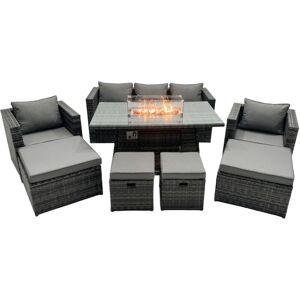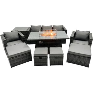 Important:Please put the gas fire pit on the glass top not under the glass .Do not cover the igniter with lava .please refer to the picture in the listing. we strongly recommend using 5 kg gas tank. Before using the fire pit ,please check it carefully if there is any leakage at the joint place or the hose . if the gas bottle is not fixed correctly or the hose has some leakage it may cause danger . Set dimensions: 1 x 3 Seater Sofa: 177W x 65D x 66H cm 2 x Arm chairs size: 74L x 65W x 66H CM 2 x Big footstool 65L x 65W x 34H cm 1 x Fire pit dining table: 140L x 80W x 70H cm Dark grey mixed rattan with dark grey fabric .Color may vary due to light or monitor .we are unable to return the item due to this problem .Please consult before purchase if you have requirment on color saturation. Great Price Compared With Other Online Or Offline Store For Fire Pit Set. Items Comes Flat Packed And Easy to Assemble, Sturdy Galvanized Steel Tube Metal Frames With Powder Coating To Prevent Rust.. Flat PE Rattan Completely Made By Hand, 5mm Thick transparent Tempered Glass With Sucker On Surface To Prevent Sliding8 CM Thick Seat Cushion With Soft Back Cushion provide You with More Comfort. Low Maintenance ,Removable Cushion Cover And Easy To Move Different Place. Pls Keep the Cushion Indoor Or Put on With Rain Cover When Not In Use .Put on Furniture With Rain Cover If Not Use For Long Time . This item is for kerbeside delivery , we can't deliver to your room .WARRANTY&SUPPORT: Though we have nearly 100% checked before shipment , but as this item is 100% handmade so If you have any issues of assembly, missing parts, damaged or other problems of product quality of this outdoor rattan furniture set, please feel free to contact us, and our after-sales team will respond within 24 hours and offer you the most perfect and powerful solutions. Fimous Rattan Garden Furniture Firepit Dining Set 7 Seater Lounge Sofa Table Set with 2 big Footstool in Dark Grey