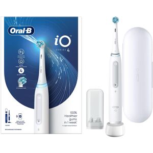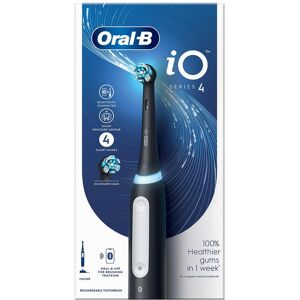 The iO 4 electric toothbrush features Oral-B's best technology, combining a dentist-inspired round brush head with micro-vibrating bristles for a professional purifying clean feel at home. The Smart Pressure Sensor helps prevent you from brushing too hard or too softly to protect your gums better. Gum Guard alerts you to time spent brushing with too much pressure. Replace your Oral-B iO toothbrush head every 3 months for the best results. Oral-B's best-ever clean with revolutionary iO technology for a professional purifying clean feeling & gentle brushing experience. HEALTHY GUMS: Combines the unique round brush head from Oral-B with gentle micro-vibrations for a fresh, clean mouthfeel and 100% healthier gums in one week vs. a regular manual toothbrush. 4 BRUSHING MODES: To personalise your brushing: Daily Clean, Whitening, Sensitive, Super Sensitive. SMART PRESSURE SENSOR: Signals red, white or green to alert you whether you're brushing too hard, too softly or with just the right amount of pressure. CHARGING STATION: Ensures a full charge with long-lasting batteries, comes with UK 2 Pin Plug. Box Includes: 1x iO4 handle, 1x toothbrush head, 1x travel case, 1x charger, 1x refill holder