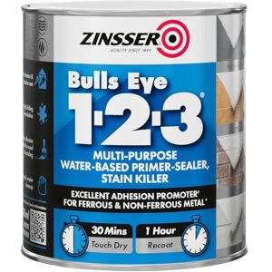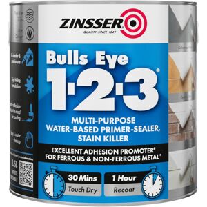 Bulls Eye® 1-2-3 is rust inhibitive and ideal for new metal. It resists flash rusting in its “wet” state – and provides rust resistance for the life of the coating. It dries to a smooth, tight, water-resistant film that is perfect for painting iron railings, steel doors, metal panels, duct work, galvanised gutters – any interior or exterior metal surface. It has a quick 30 minute drying time and 1 hour dry time and can be tinted towards the colour of your topcoat (mid-tone colours only) to eliminate the need for one coat of paint – saving both time and money. Key features and benefits Interior and exterior Adheres to all surfaces without sanding Seals stains, graffiti and tannin bleed Mould and mildew resistant film Rust inhibitive – great for new metal Dries in 30 minutes, recoatable in 1 hour Tintable to mid tone colours Application information Coverage - 10m2 per Litre Touch dry 35 minutes Hard dry 7 days Recoatable 1 hour Thinning Add 10% clean water and stir thoroughly. Note that