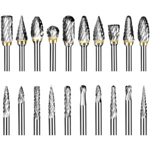 Including rotary burrs, grinding heads, and rotary cutting tools, covering a wide range of drilling, grinding, and cutting tasks. Carbide burr set featuring a solid double-cut groove, the -cut teeth for fast material removal, improving efficiency and delivering a rougher finish. Made from high-hardness tungsten carbide steel, , capable of processing materials up to HRC70 hardness, Its working life is 10 times longer than high-speed steel and 200 times longer than a grinding wheel. Suitable for cutting, carving, deburring, finishing, and precision work on both metals and non-metals, widely used in metalworking, model engineering, wood carving, jewelry making, and more. 1/8 inch (3mm) shank carbide burr bits, compatible with pneumatic and electric die grinders, ideal for efficient grinding in tight spaces. Colour:Silver Material:Metal Package Contents: 1set * tungsten grinder Only the above package content, other products are not included. Note: Light reflection and different displays