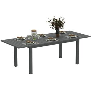 This Outsunny outdoor table comes in an extendable design - the six-seater size extends to an eight-seater: great for when you need to welcome more people to the table it's easy to expand with the butterfly leaf mechanism. Made from aluminium, this is a tough table suitable for outdoor use. Specifications: ● Colour: Grey ● Material: Aluminium ● Overall Dimensions: 160/220L x 90W x 73H cm ● Tabletop Thickness: 2.5D cm ● Maximum Load: 70 kg ● Item Label: 84G-591V00GY Features: ● Extends to accommodate 6-8 guests comfortably ● Butterfly leaf mechanism simplifies extension and retraction ● Powder-coated aluminium frame enhances outdoor durability ● Slatted top ensures quick drying and easy cleaning ● Adjustable feet stabilise on uneven surfaces ● Assembly needed