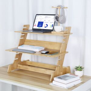 An awesome computer desk stand enables you to raise the screen to an ergonomic height for viewing or typing. Portable turns any surface into a standing workstation. Wide shelves organize computers, laptops, PCs, calculators, mice, and keyboards. 7 Positions settings, easy to readjust different heights from 21.8cm-52.5cm. Natural wood finishes for a simple and clean look. 17 Stories