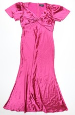 Introducing our Pink Satin Midaxi Dress with Corsage Neck Detail, a romantic addition to your wardrobe. Crafted from luxurious satin, this dress features an elegant corsage detail at the neckline, adding a touch of sophistication. The soft pink hue enhances its feminine charm, perfect for special occasions or formal events. The midaxi length offers a flattering silhouette, while the sleeveless design adds a modern twist. Pair with delicate jewellery and heels for a polished look that exudes grace and elegance. Little Mistress Women's Pink Satin Rosette Midaxi Dress Size: 18