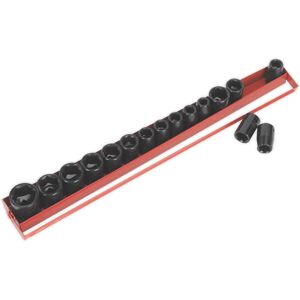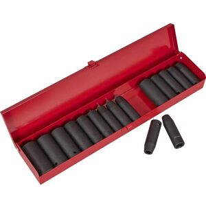 Deep WallDrive® sockets are manufactured from Chrome Vanadium steel with electrodeposition finish for added corrosion resistance. Suitable for use with impact type air wrenches. Supplied in storage case. Features & Benefits: • Manufactured from Chrome Vanadium steel with electrodeposition finish for added corrosion resistance. • Sizes: 10, 11, 12, 13, 14, 17, 19, 21, 22, 24, 27mm, 1/2", 9/16", 5/8", 11/16", 13/16". • Deep WallDrive® sockets. • Suitable for use with impact type air wrenches. • Supplied in storage case. • Lifetime guarantee*. • Model No. AK685 Specifications: Model No AK685 Brand: Premier Quantity of Sockets: 16 Type: 1/2"Sq Drive - Deep Contents: 10, 11, 12, 13, 14, 17, 19, 21, 22, 24, 27mm, 1/2", 9/16", 5/8", 11/16", 13/16" Nett Weight: 4.12kg