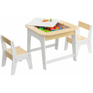 This table and chairs set offers 3-6 years old kids a wonderful place to read, play, study, write or eat. Its double-sided tabletop has whiteboard and blackboard for children to draw with their friends. Plus, the hidden storage space also helps kids to build a good habit of sorting out. When toddlers feel tired, they can rest on our ergonomic chairs. After use, you can store these chairs under the table. Plus, our table and chairs set has passed EN71 certifications, which is safe and durable enough for kids to use. The smooth painted surface is easy to clean, saving your time and energy. Costway 3 Pcs Kids Table & Chair Set Toddler Activity Writing Double-sized Tabletop in Grey
