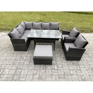 This item comes 2 boxes with different couriers so if you just receive one box pls kindly wait another 1 or 2 days.In case the glass was shattered during transportation pls do not reject the order we will send you the replacement, pls just send us the message for the replacement Descriptions This deluxe lift table is a great addition to patio or garden, made with high quality PE rattan and durable steel construction for sturdiness and long lasting. It also comes complete with a 5mm thick clear tempered glass for the table top, so you can use it on a daily basis. It's easy to maintain and keep clean using a damp cloth. Features . Powder Coated Steel Frame: Galvanised for extra strength and resistance to rust, it ensures a strong and stable base, with the PE wicker making it sturdy, durable, resistant to UV and light water damage •Factory direct sold to guarantee quality and after-service. •Items come flat pack but Easy assembled . Specifications - Colour: dark grey mix rattan with dark grey fabric - Material: PE rattan, Metal - 1 Table Dimension: 140L *80W *70/50H cm (clear tempered glass inside) - Table Weight Capacity: 80kg 1 year quality guarantee