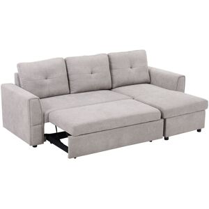 Sink into comfort and welcome style into the home: choose this click clack sofa bed from HOMCOM. The three-seater size is spacious for you and friends, with the 'L' shape corner design giving a touch of extra leg room - perfect for stretching out and resting on. Filled with thick sponge for comfort, the couch also converts into a recliner sofa bed, so you give overnight guests a plush place to sleep. Finished with handy under-seat storage, so you can keep your space tidy and clutter free. Specifications: ● Colour: Grey ● Materials: Polyester and plastic ● Dimensions: 85H x 232W x 141Dcm. Two-seat: 43H x 126W x 52Dcm. Chaise: 43H x 75W x 107Dcm. Armrest: 17.5H x 18W x 83.5Dcm. Seat thickness: 14cm. Back: 44.5Lcm ● Weight capacity: 150kg per seat ● Item Label: 839-191V70 Just so you know: this item ships and arrives in separate boxes. Delivery times may vary with each box. Box quantity: 3 Features: ● Chaise lounge section can be set left or right ● Under-chaise storage section, keeps