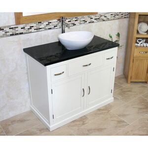 A superb contemporary designed handcrafted beautiful solid oak top grey painted base single bathroom vanity unit with a two-door useful cupboard with a height-adjustable or removable central shelf, this unit also features three top drawers for further storage. This beautiful luxurious unit comes complete with a pre-drilled black quartz top & a ceramic basin set. The central drawer has been adapted to help house the waste so that it can still function as a drawer when utilized as a bathroom vanity unit. Brayden Studio Top Finish: White Marble, Vanity Unit Colour: White