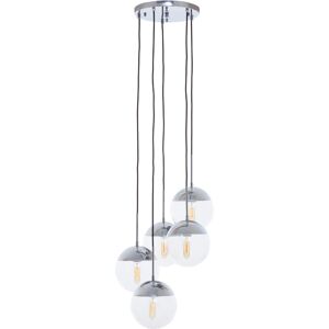 The Revive pendant light in the chrome finish will bring elegance and sophistication to the living area. Suspending from a round metal canopy, the 5-light pendants have adjustable cords and the globe-shaped clear glass shades are attached at the end.